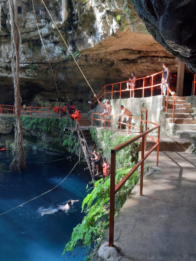 Ein kleines Highlight bietet die Cenote für Action-Freaks: Es hat eine Liane, welche als Schwingseil benutzt wird.